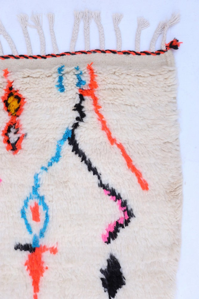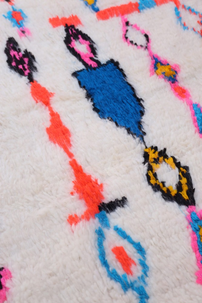 Azilal rugs come from tribes in Morocco’s High Atlas Mountains. What makes them special is their bold, abstract designs—often full of symbols and stories written in Tamazight, the Berber language. The base is always made from natural, undyed wool, giving each rug a raw and authentic feel.