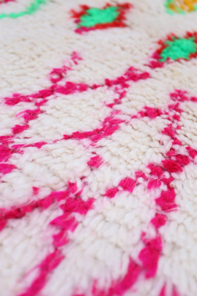 Add a splash of cheerful energy to your home with the Wild Harmony Rug, part of the Azilal Joyful Collection by Knot & Hue. Handwoven from 100% natural wool in Morocco’s Atlas Mountains, this one-of-a-kind Berber rug is a celebration of bold shapes, radiant neon tones, and spontaneous artistic expression.