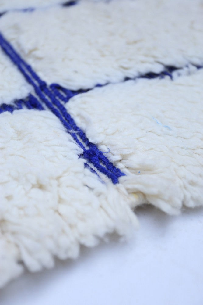 This Beni Ourain rug is a true classic — loved for its simple blue-and-white patterns and incredibly soft, natural wool. Handwoven with care, it brings a quiet kind of elegance and authenticity into any room. Whether you lay it in your living room, bedroom, or even your office, it adds both cozy comfort and timeless style.