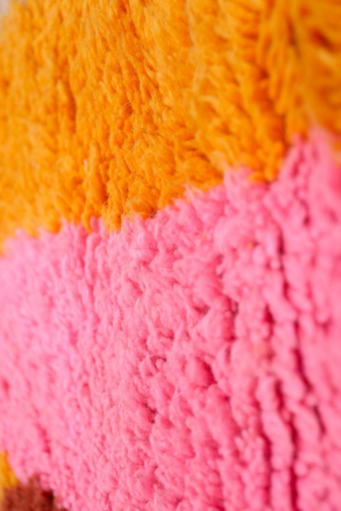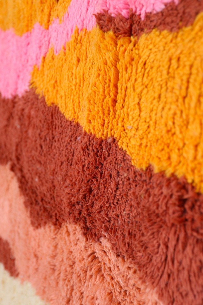 Inspired by shifting sands and glowing canyon walls, Desert Ember is a one-of-a-kind Moroccan Azilal rug that radiates warmth and texture. Handwoven from 100% natural wool by skilled Berber artisans in the Atlas Mountains, this piece features layered waves of terracotta, ochre, sand beige, and blush pink, creating an organic, flowing composition. Every rug is custom-made using centuries-old techniques, giving each one a unique soul and story. Perfect for those who seek art underfoot, this rug infuses interiors with earthy vibrancy, cultural authenticity, and contemporary character.