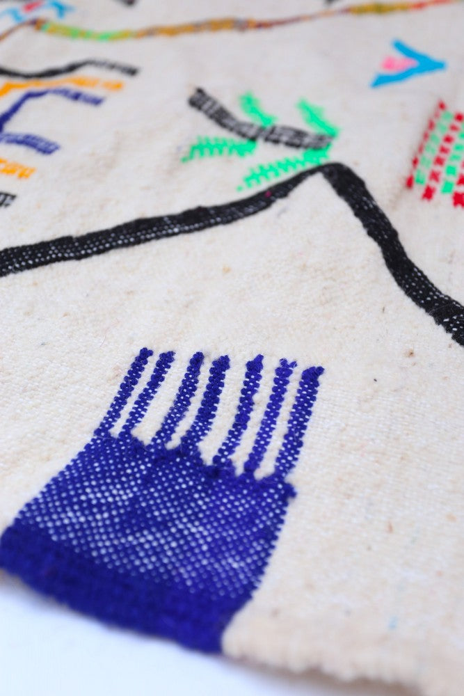 Woven by hand in the High Atlas Mountains, this flat-weave kilim rug is crafted from 100% natural sheep’s wool and dyed using time-honored artisan techniques. Its lively patterns and bold color accents bring a sense of warmth, heritage, and individuality to any space—just like the women who create it.